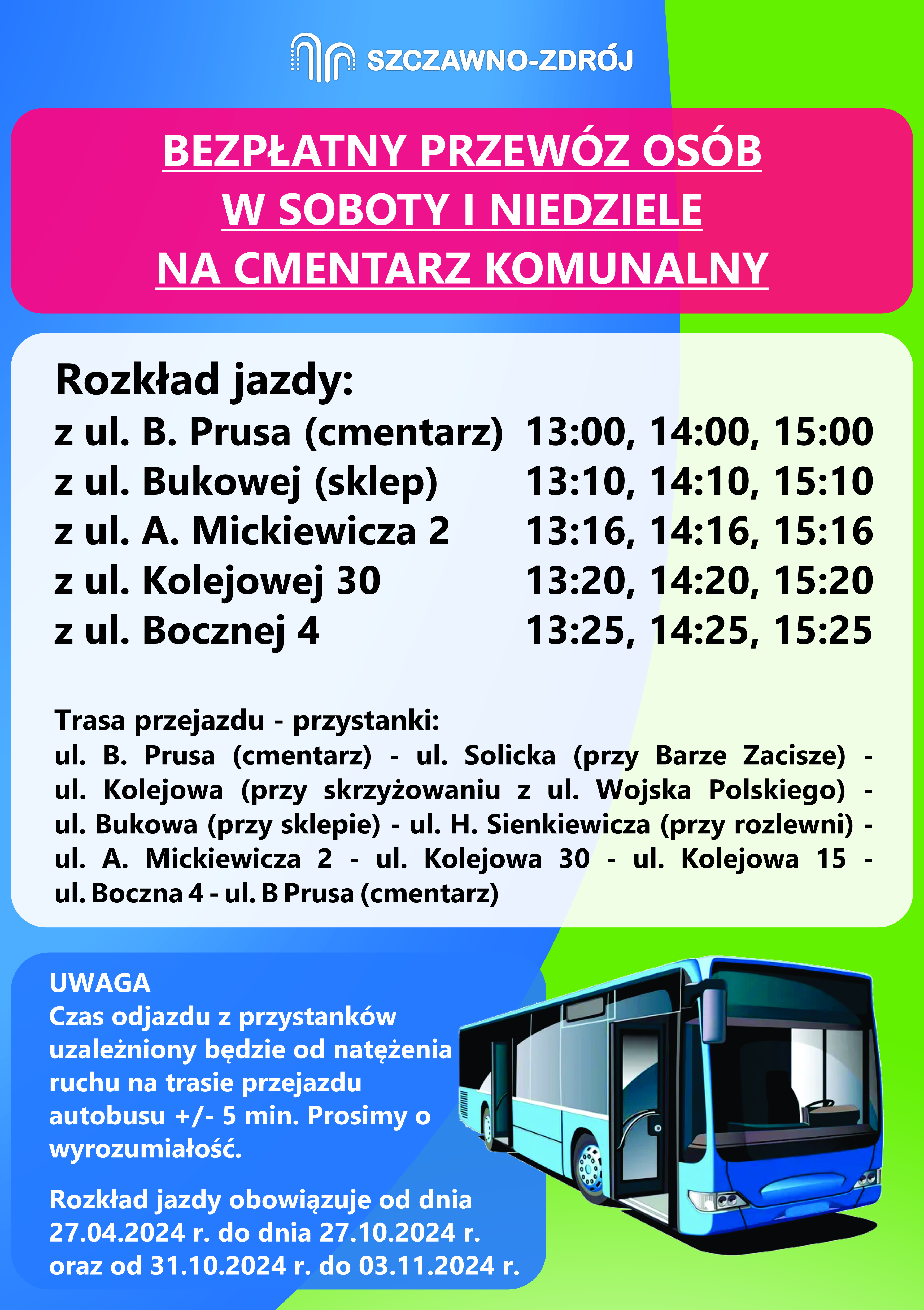 Bezpłatny przewóz osób w soboty i niedziele na cmentarz komunalny w Szczawnie-Zdroju