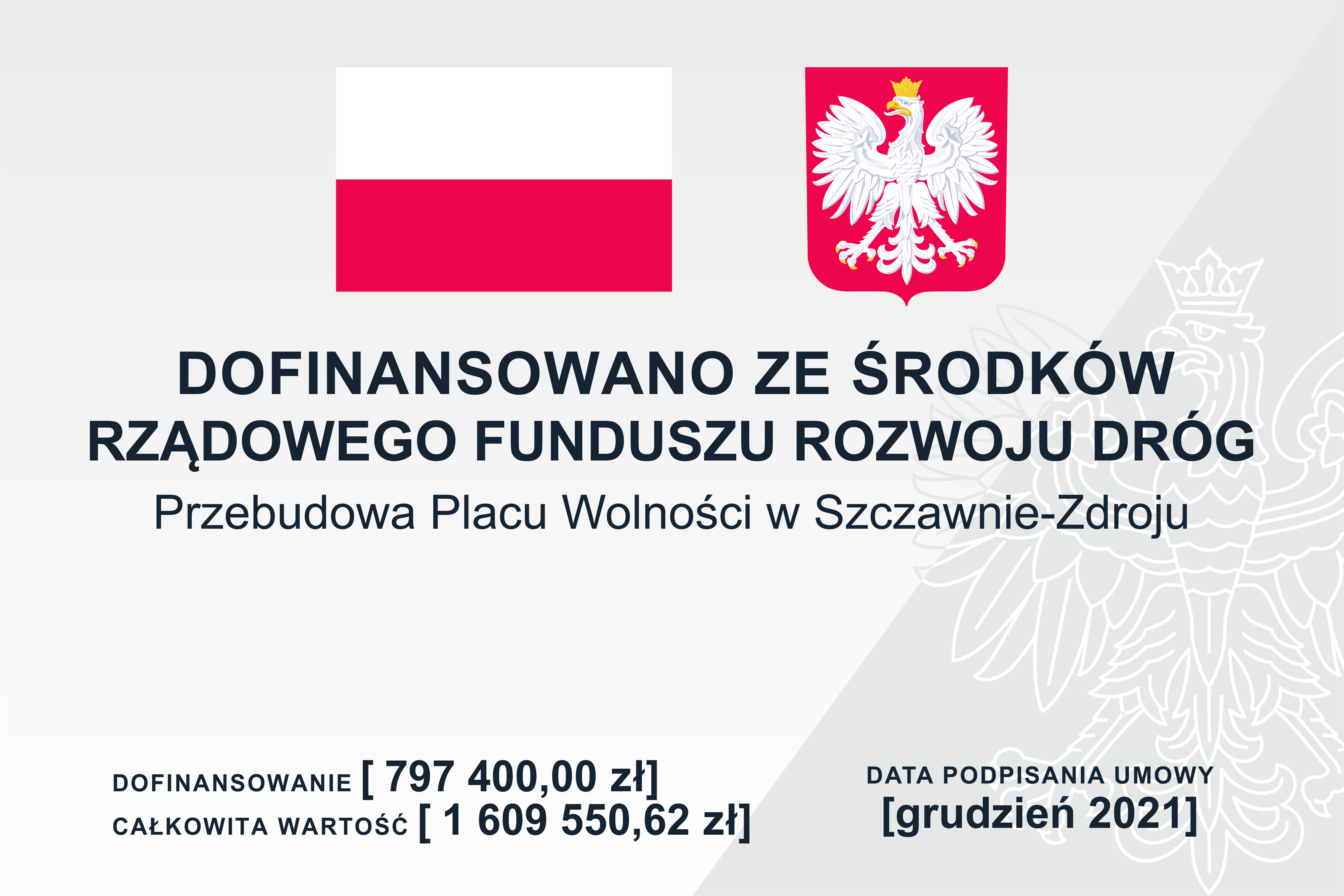 Kwota dofinansowania z budżetu państwa w ramach Rządowego Funduszu Rozwoju Dróg: 797 400,00 zł.