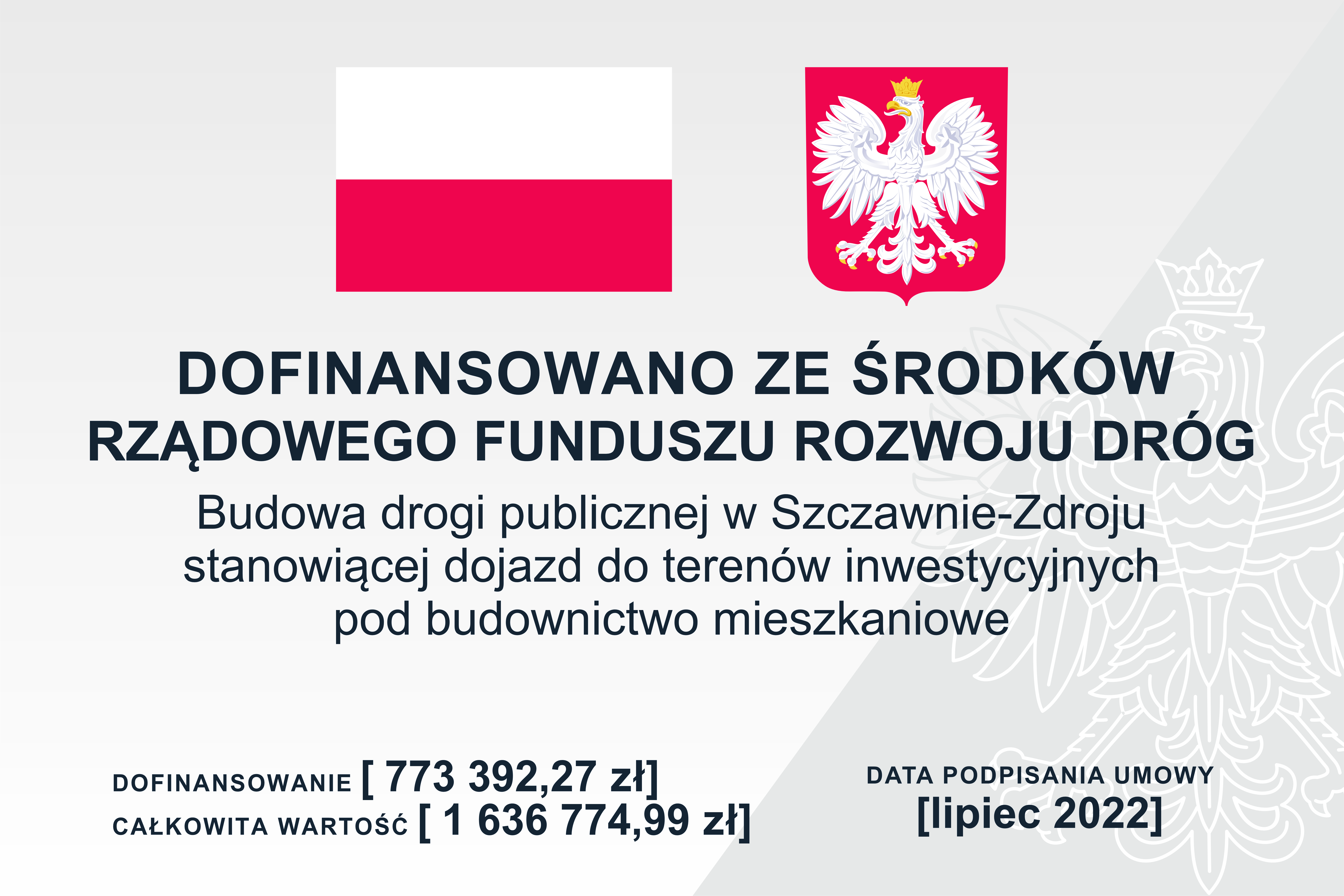 Kwota dofinansowania z budżetu państwa w ramach Rządowego Funduszu Rozwoju Dróg: 773 392,27 zł.