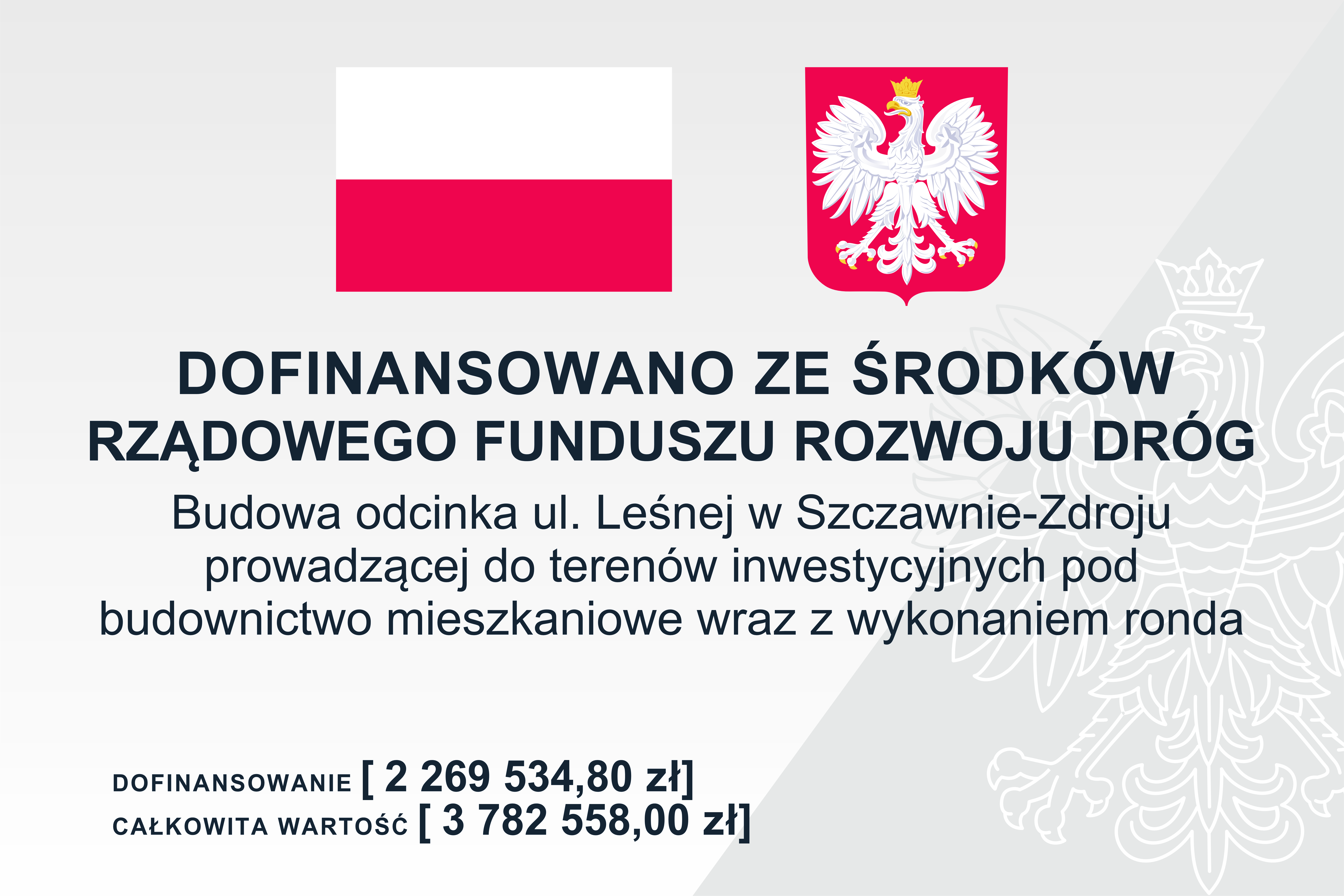 Kwota dofinansowania z budżetu państwa w ramach Rządowego Funduszu Rozwoju Dróg: 2 269 534,80 zł.