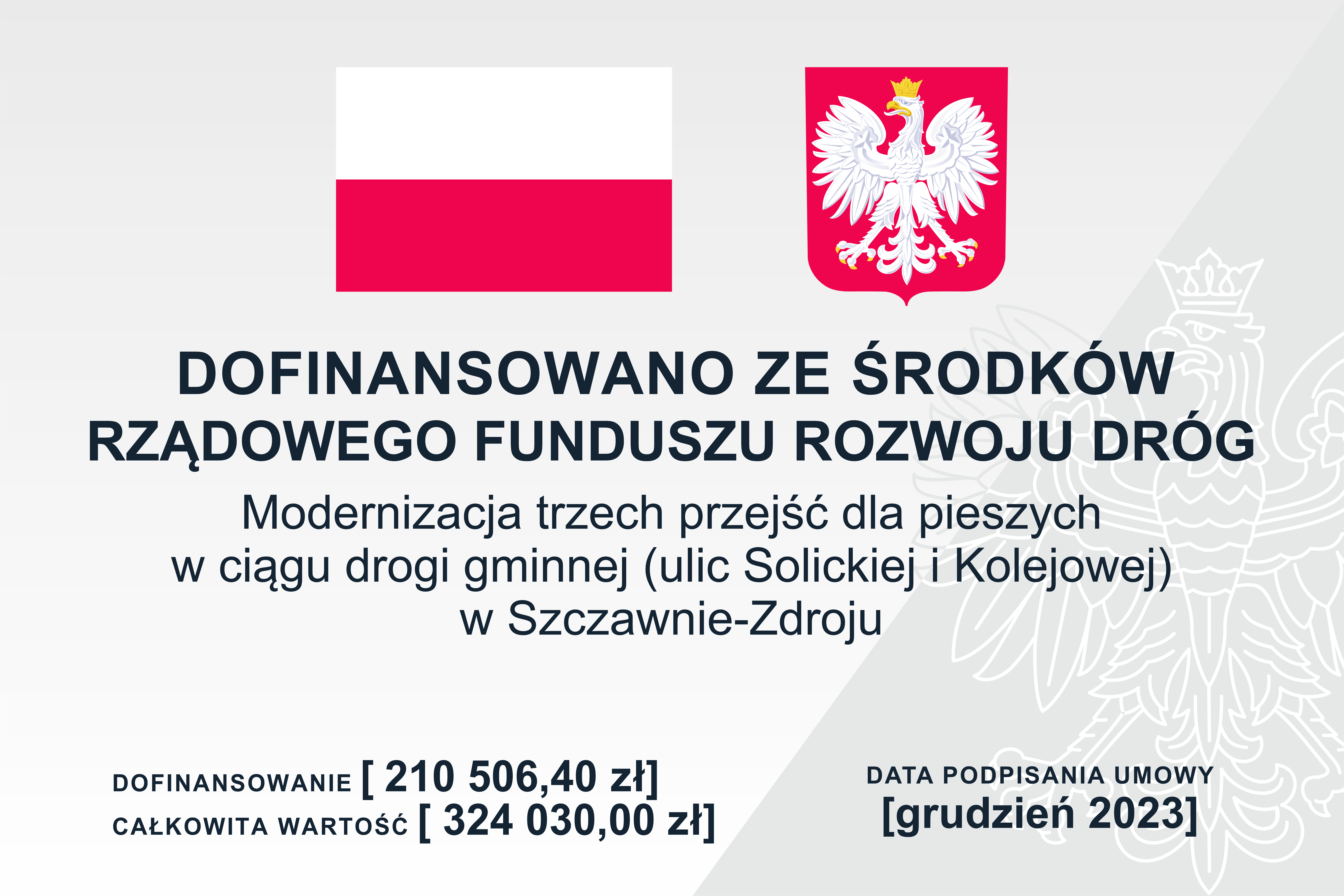 Modernizacja trzech przejść dla pieszych w ciągu drogi gminnej (ulic Solickiej i Kolejowej) w Szczawnie-Zdroju