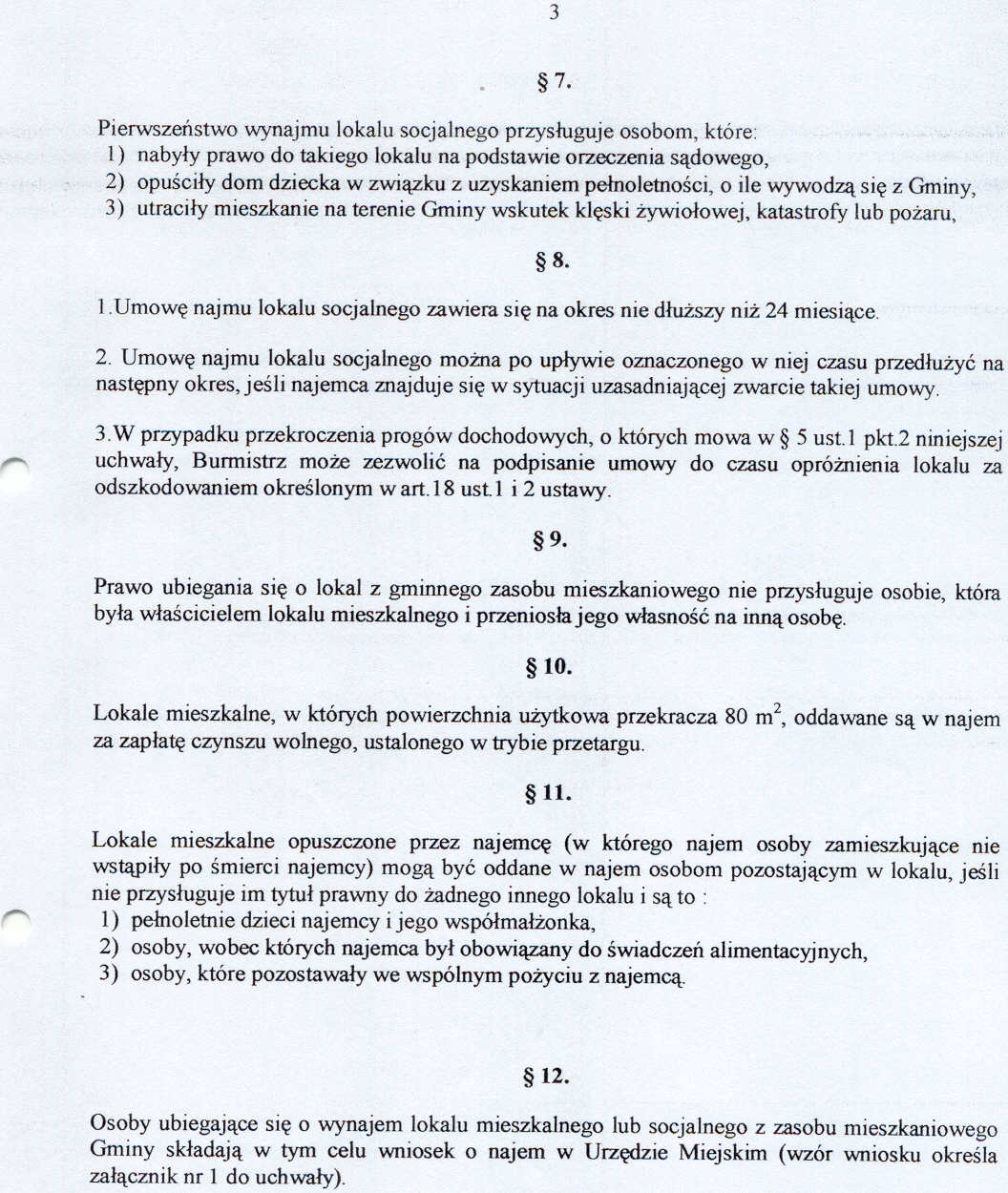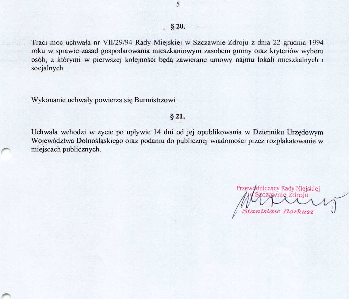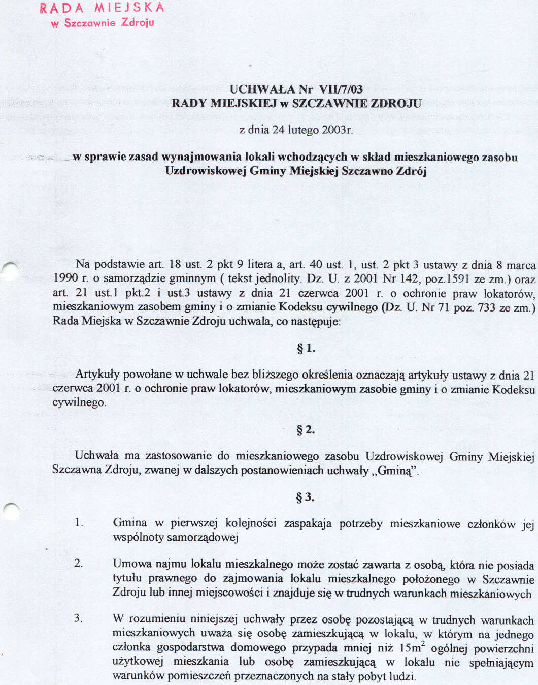 Uchwała nr VII/7/03 Rady Miejskiej w Szczawnie Zdroju z dnia 24 lutego 2003 roku - w sprawie zasad wynajmowania lokali wchodzących w skład mieszkaniowego zasobu Uzdrowiskowej Gminy Miejskiej