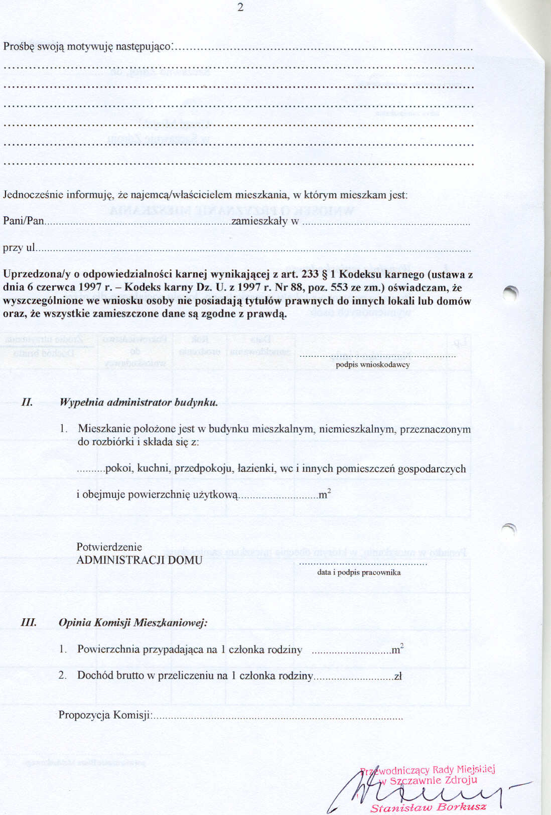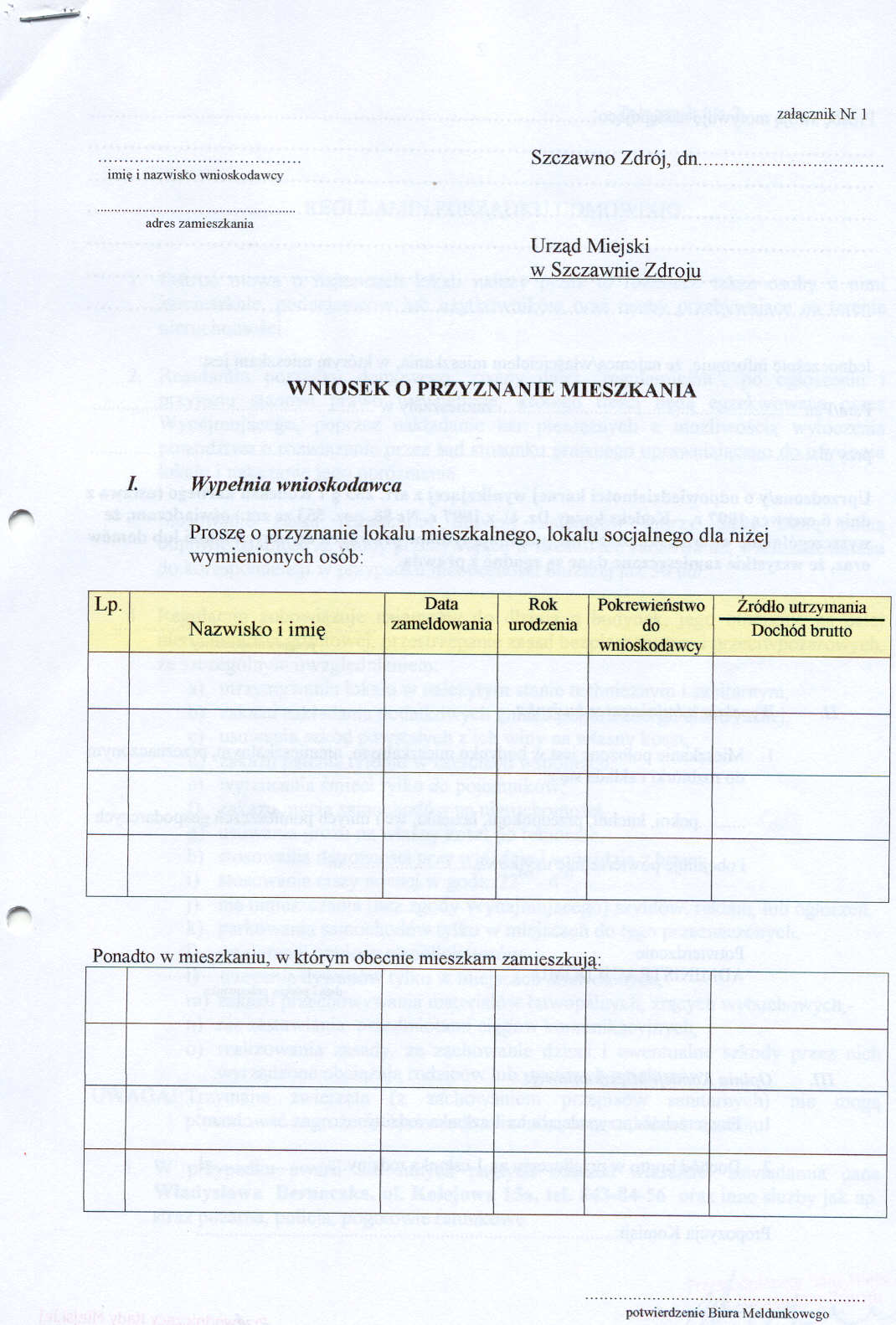 Str.5 - Załącznik nr 1. Wniosek o przyznanie mieszkania