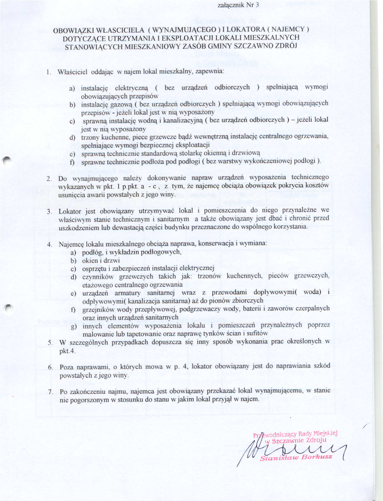 Str.8 - Załącznik nr 3. Obowiązki własciciela (wynajmującego) i lokatora (najemcy) dotyczące utrzymania i eksploatacji lokali mieszkalnych