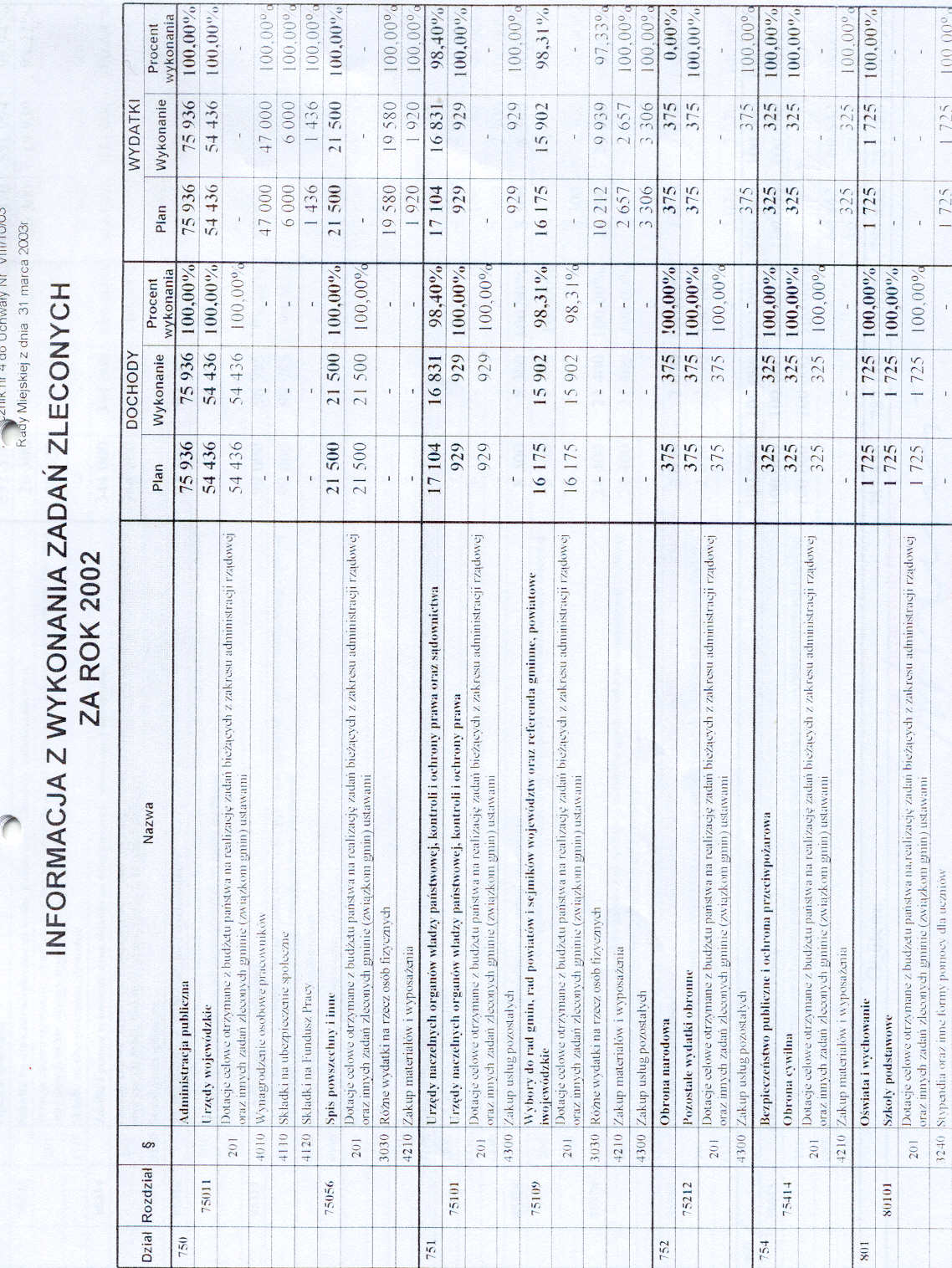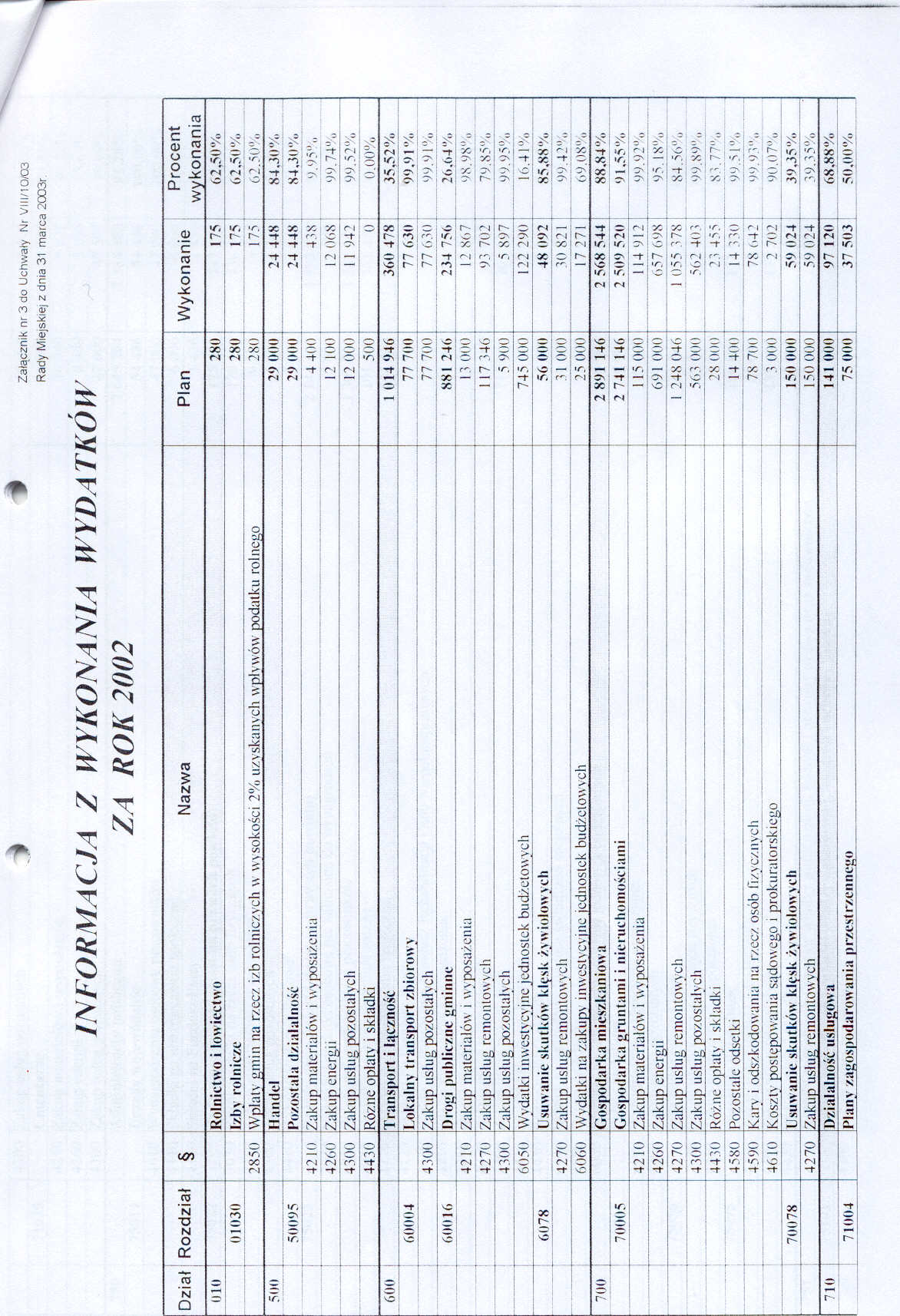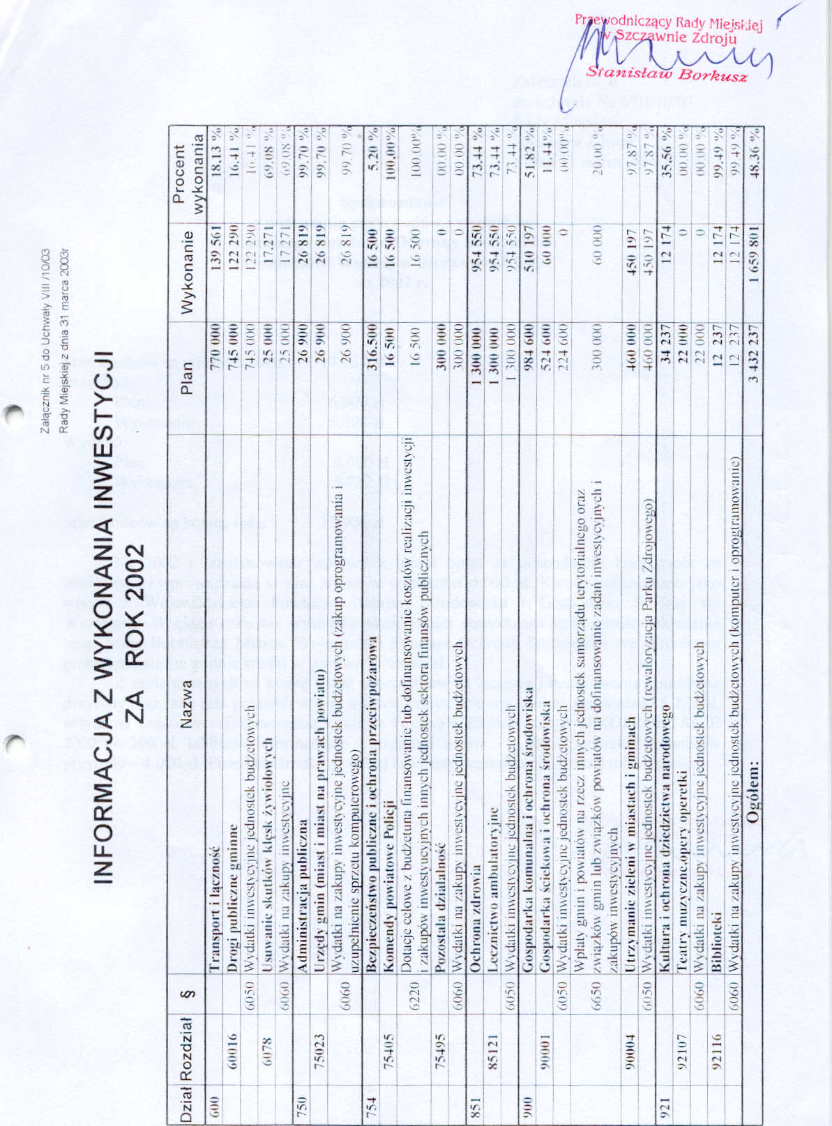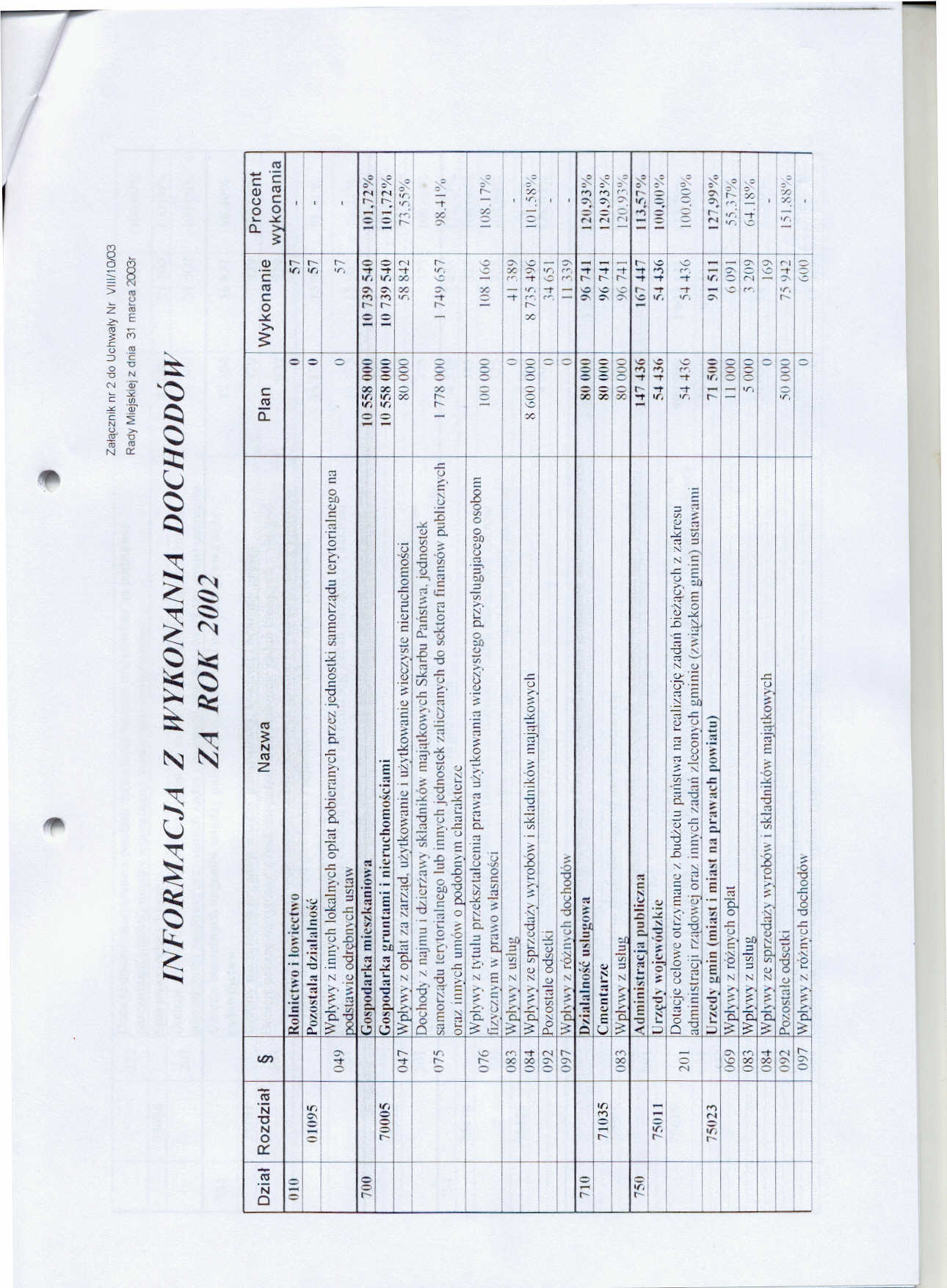 Uchwała nr VIII/10/03 Rady Miejskiej w Szczawnie Zdroju z dnia 31 marca 2003 roku - w sprawie rozpatrzenia sprawozdania z wykonania budżetu gminy za rok 2002 oraz udzielenia absolutorium Burmistrzowi