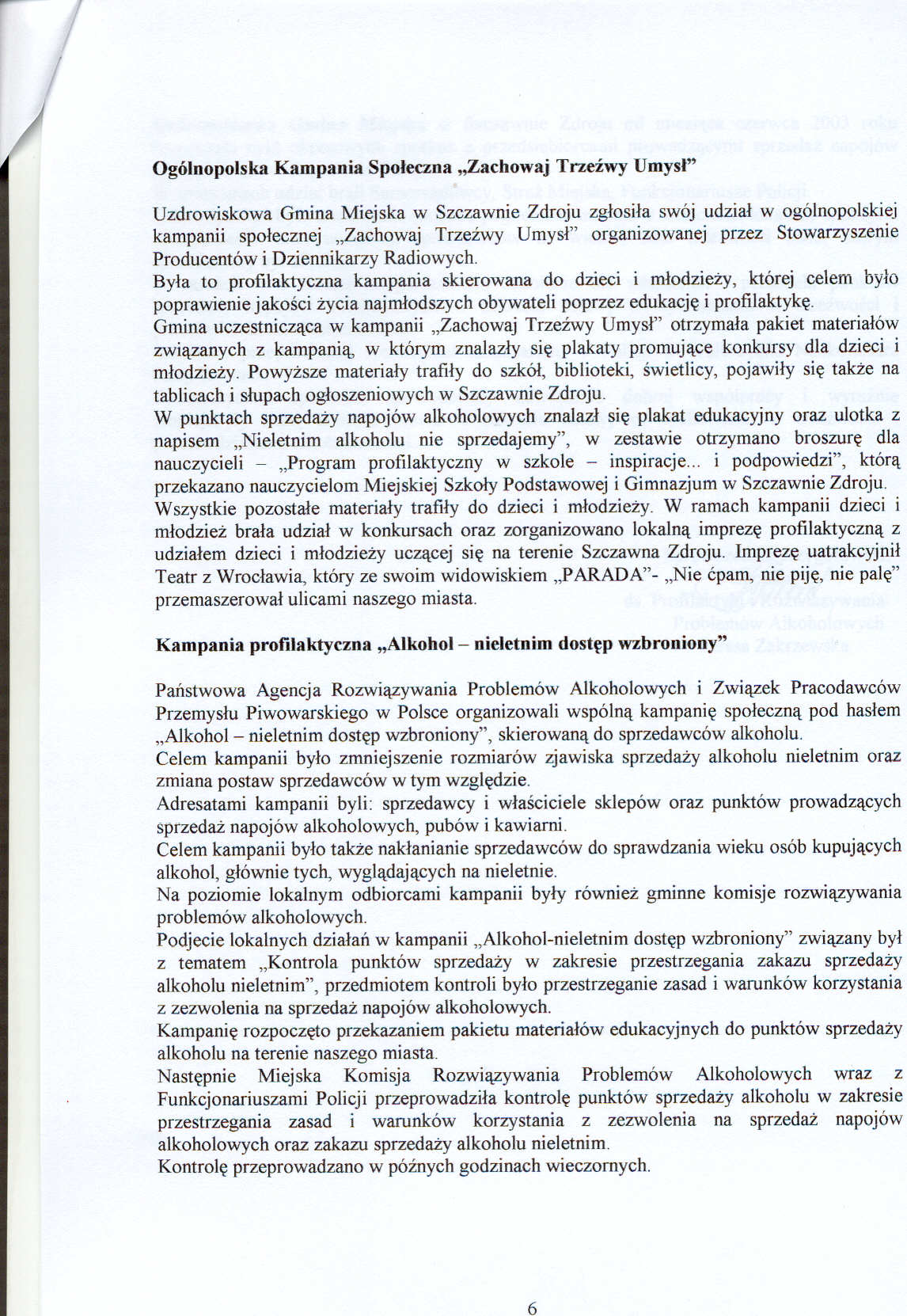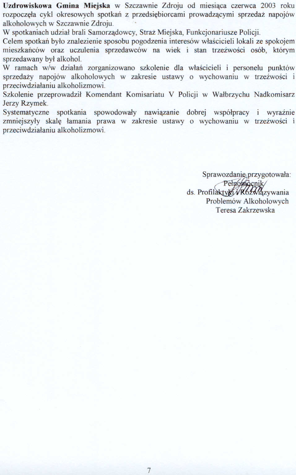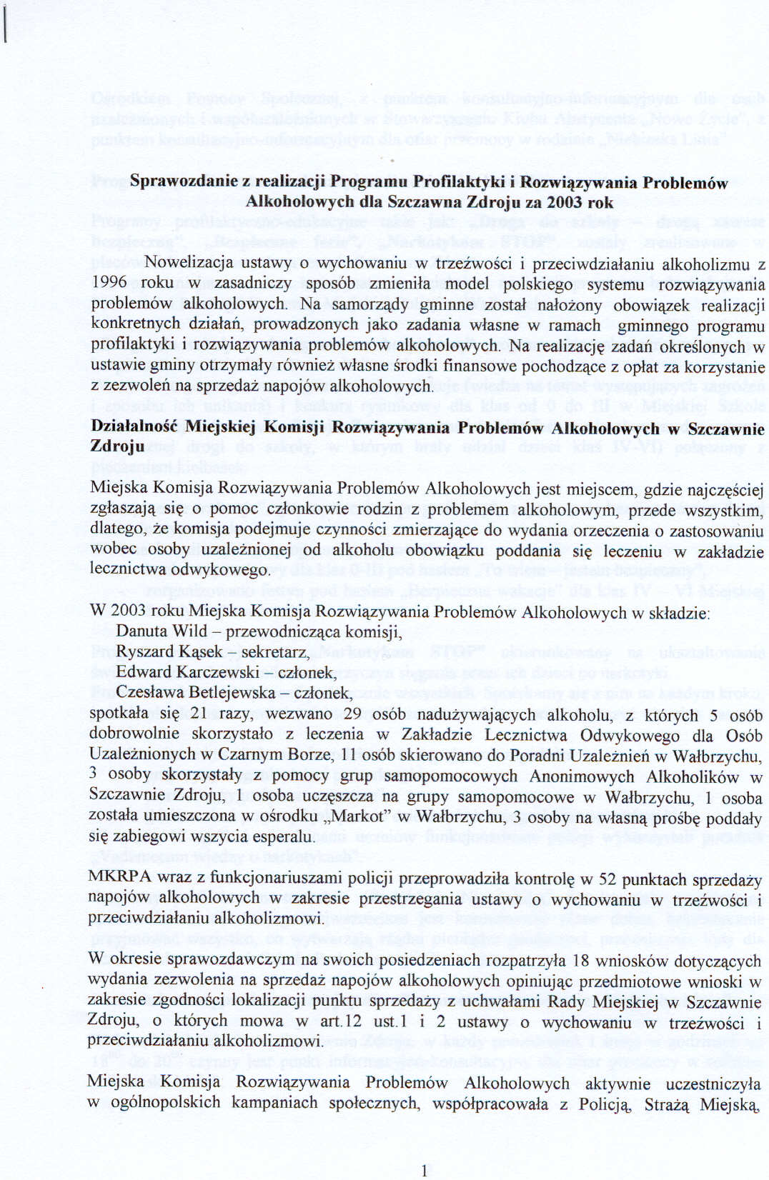 Sprawozdanie z realizacji Programu Profilaktyki i Rozwiązywania Problemów Alkoholowych w 2003 roku