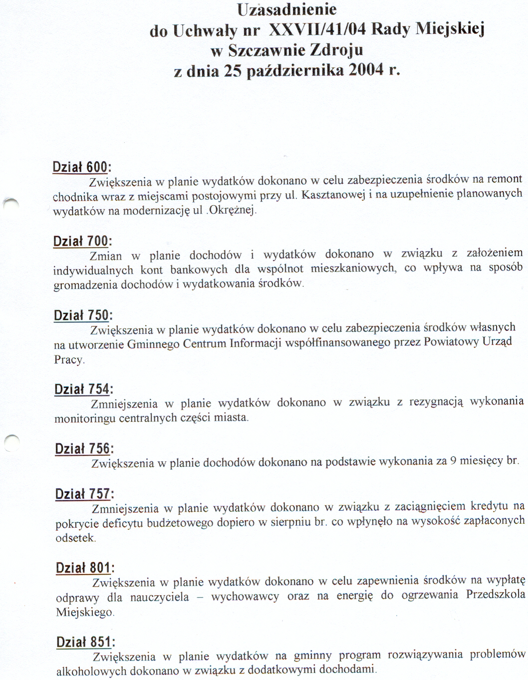 Uchwała nr XXVII/41/04 Rady Miejskiej w Szczawnie Zdroju z dnia 25 października 2004 r. w sprawie dokonania zmian w budżecie gminy na rok 2004