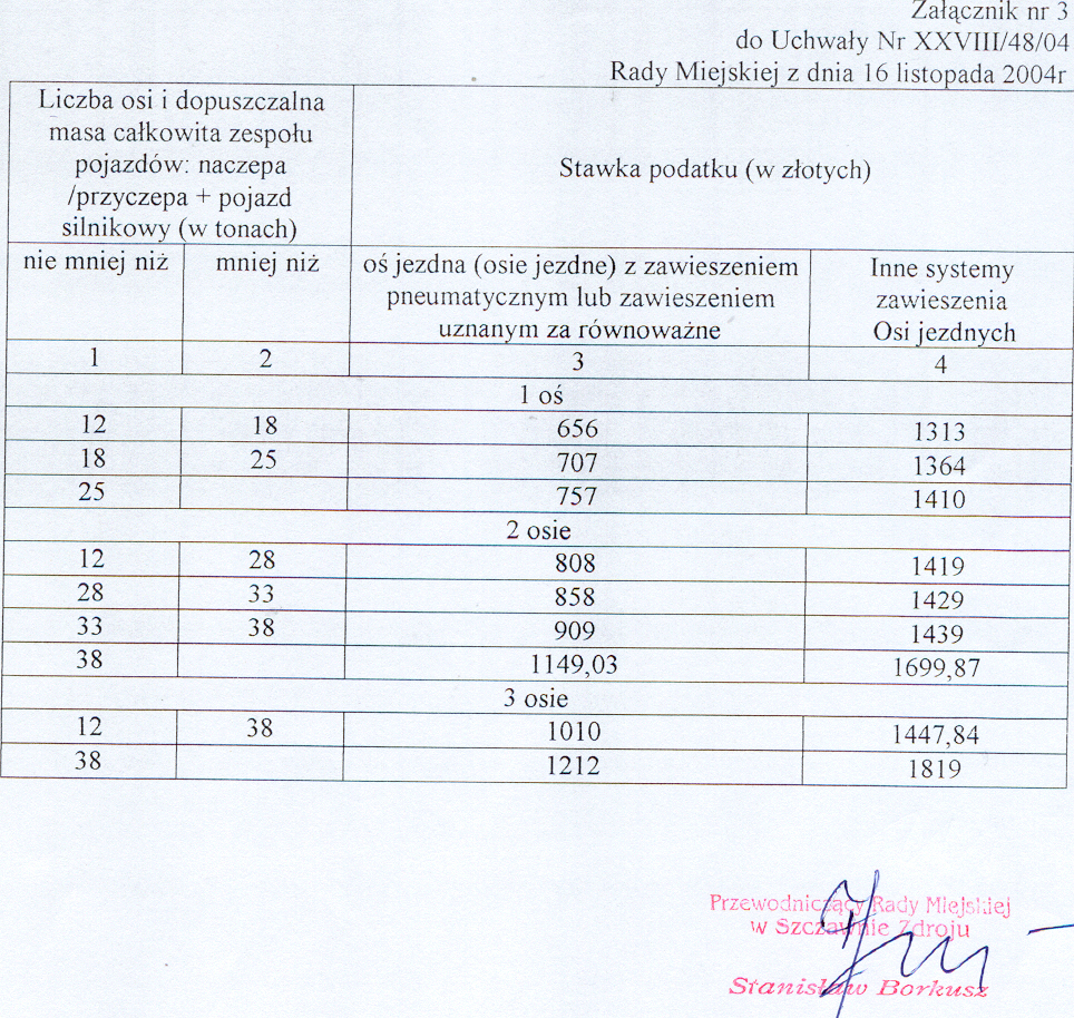 Uchwała nr XXVIII/48/04 Rady Miejskiej w Szczawnie Zdroju z dnia 16 listopada 2004 r. w sprawie stawek podatku od środków transportu