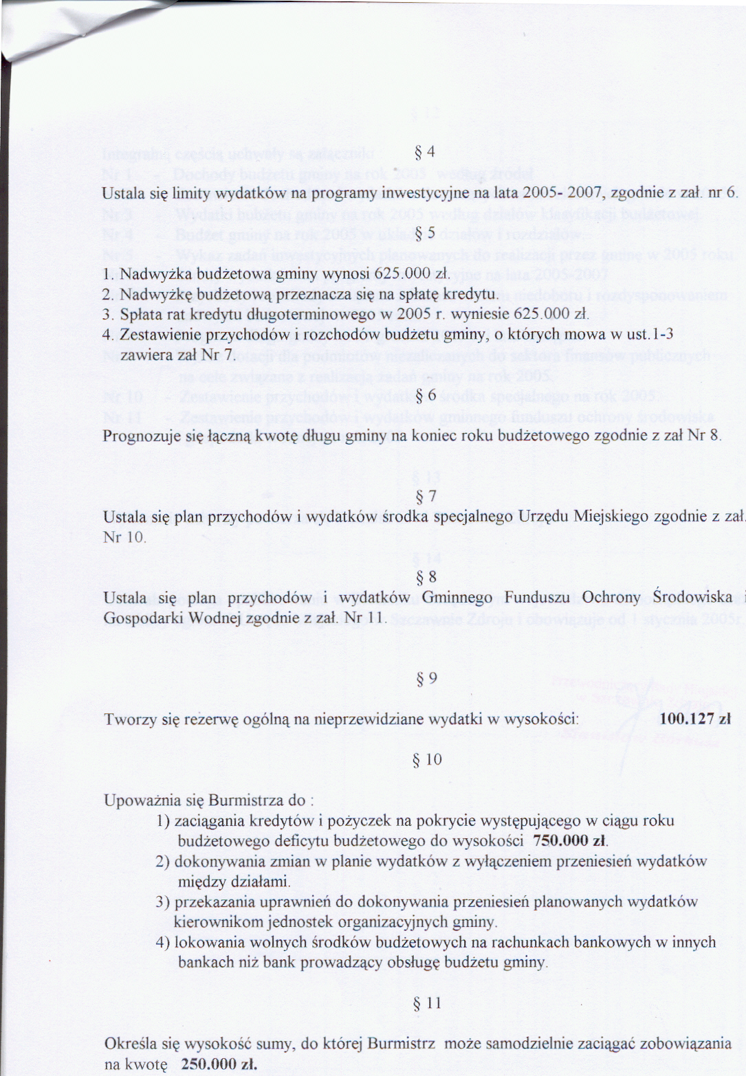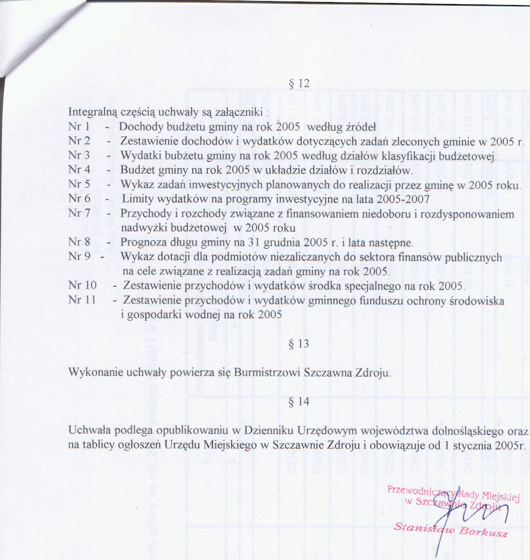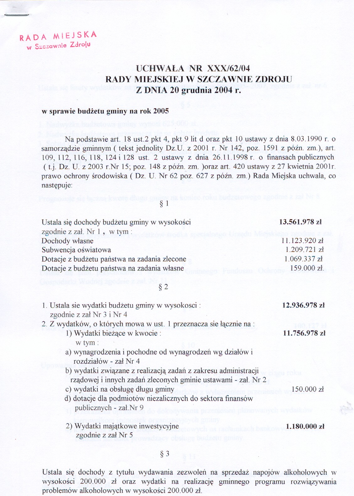 Uchwała Nr XXX/62/04 Rady Miejskiej w Szczawnie Zdroju z dnia 20 grudnia 2004 r. w sprawie budżetu gminy na rok 2005
