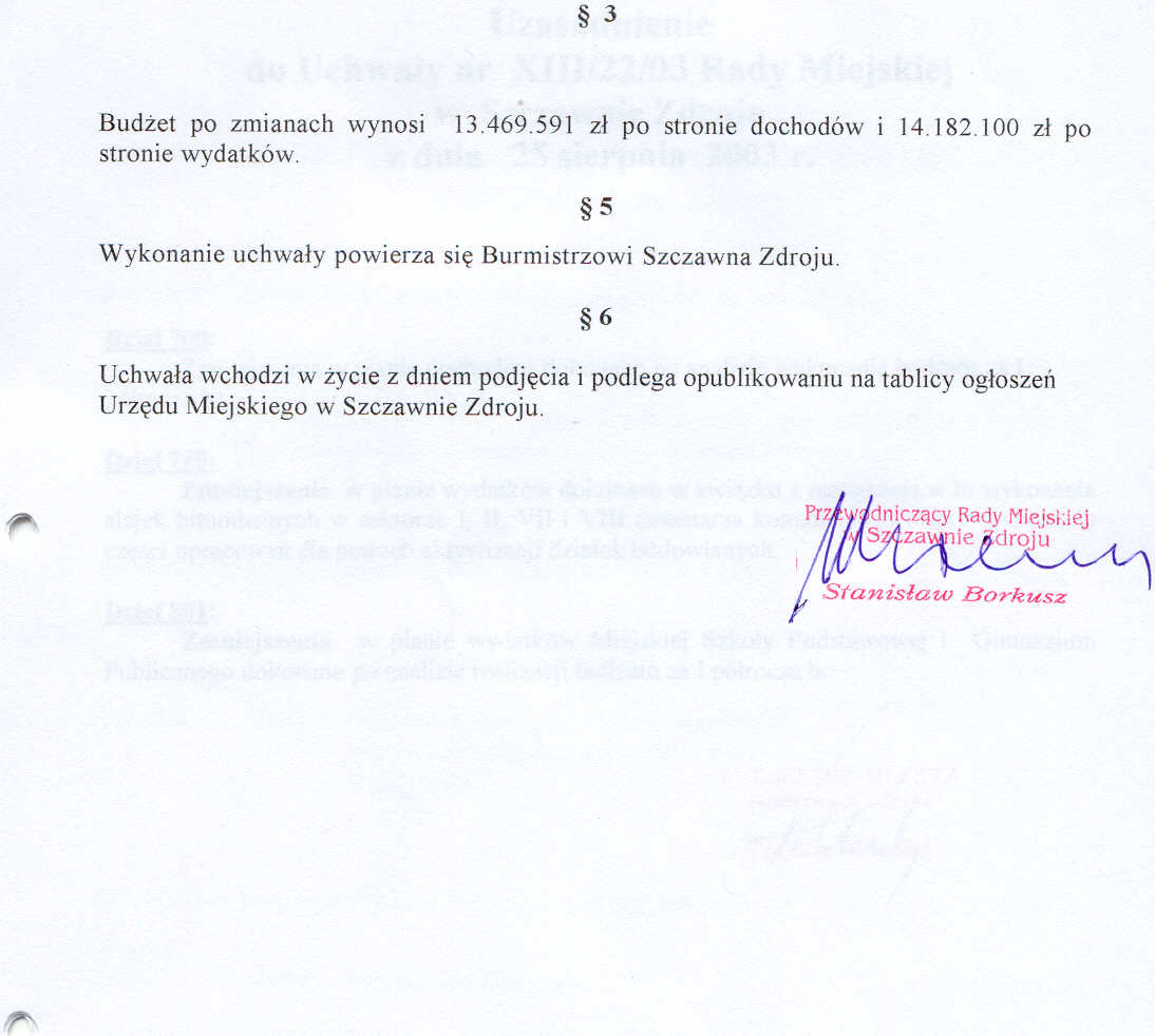 Uchwała nr XIII/22/03 Rady Miejskiej w Szczawnie Zdroju z dnia 25 sierpnia 2003 roku - w sprawie dokonania zmian w budżecie gminy na rok 2003